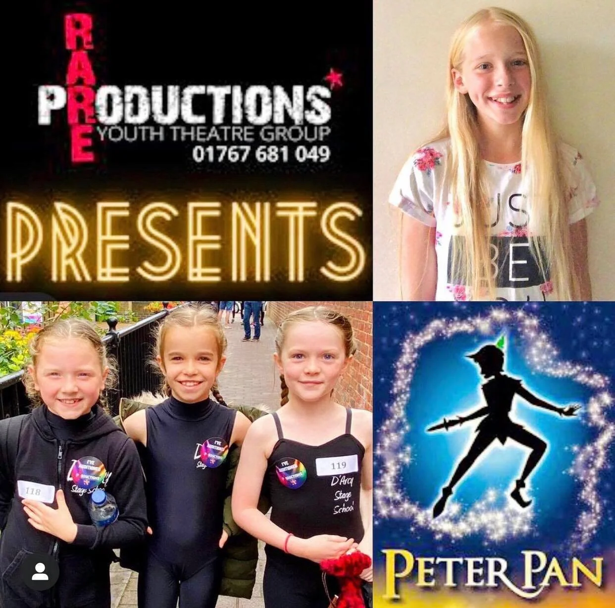 — This talented student auditioned against 100’s of hopefuls to gain a place on the cast for RARE PRODUCTIONS performances of PETER PAN! So excited to watch her on stage! The hard work and talent is paying off!! So proud x